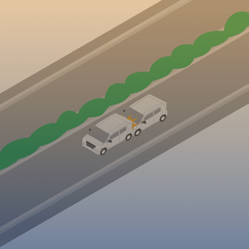 ・イラストに使用している各要素(車、背景、車、天候、信号、衝突地点など)は、代表的なイメージをイラスト化しており、色や形状等含め現実の事故の状況とは異なります。あくまで、事故のイメージとして参考までにご活用ください。