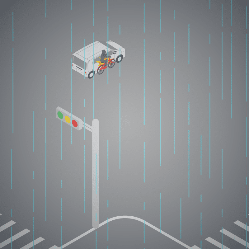 ・イラストに使用している各要素(車、背景、車、天候、信号、衝突地点など)は、代表的なイメージをイラスト化しており、色や形状等含め現実の事故の状況とは異なります。あくまで、事故のイメージとして参考までにご活用ください。