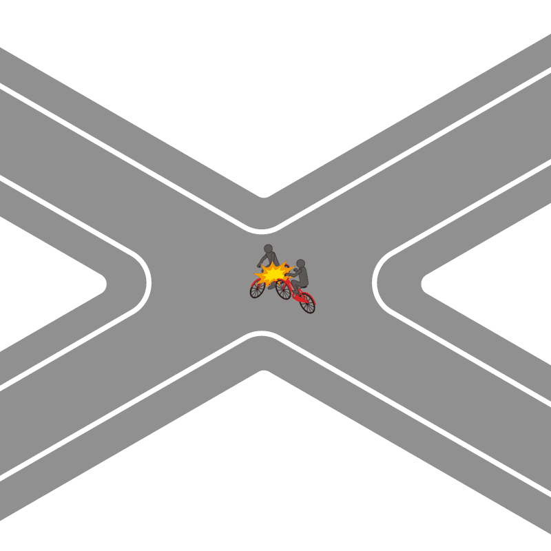 ・イラストに使用している各要素(車、背景、車、天候、信号、衝突地点など)は、代表的なイメージをイラスト化しており、色や形状等含め現実の事故の状況とは異なります。あくまで、事故のイメージとして参考までにご活用ください。