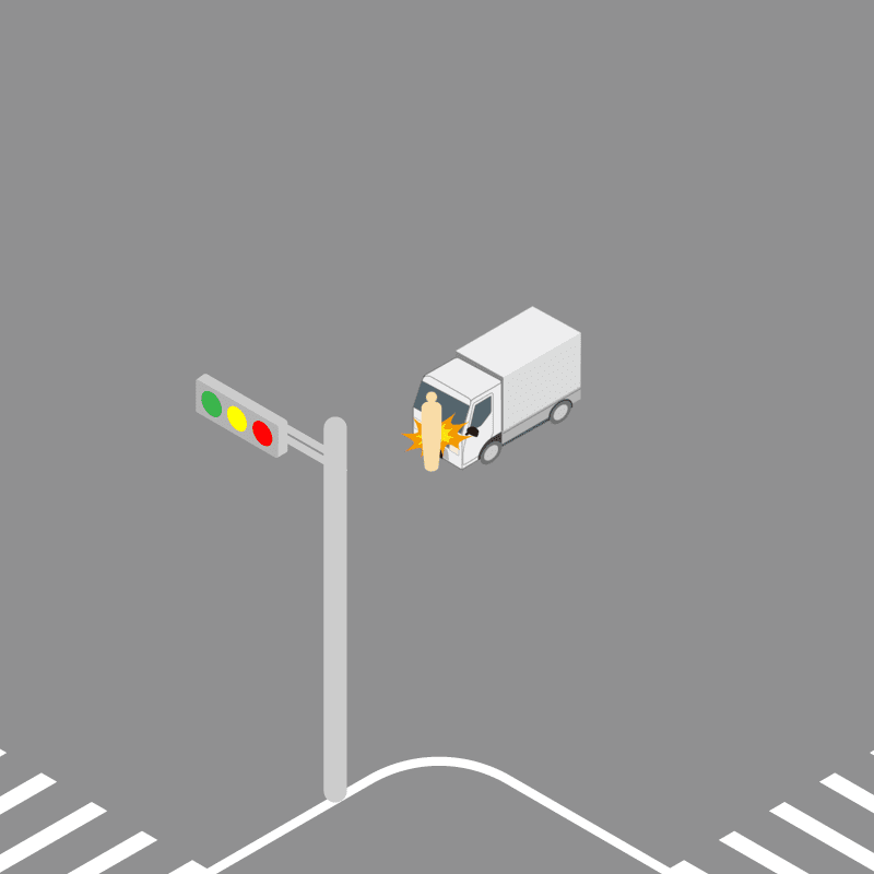 ・イラストに使用している各要素(車、背景、車、天候、信号、衝突地点など)は、代表的なイメージをイラスト化しており、色や形状等含め現実の事故の状況とは異なります。あくまで、事故のイメージとして参考までにご活用ください。