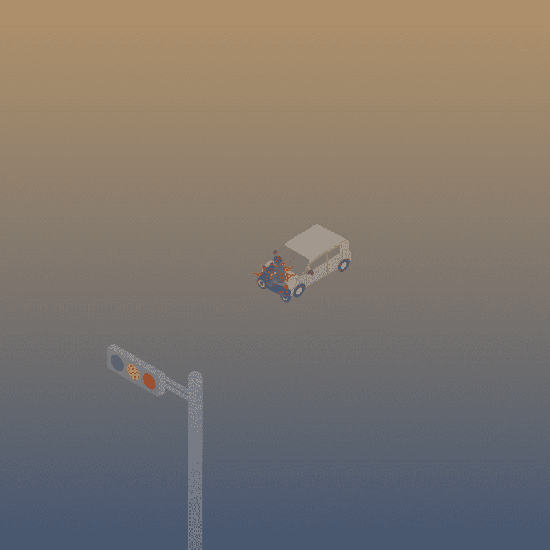 ・イラストに使用している各要素(車、背景、車、天候、信号、衝突地点など)は、代表的なイメージをイラスト化しており、色や形状等含め現実の事故の状況とは異なります。あくまで、事故のイメージとして参考までにご活用ください。