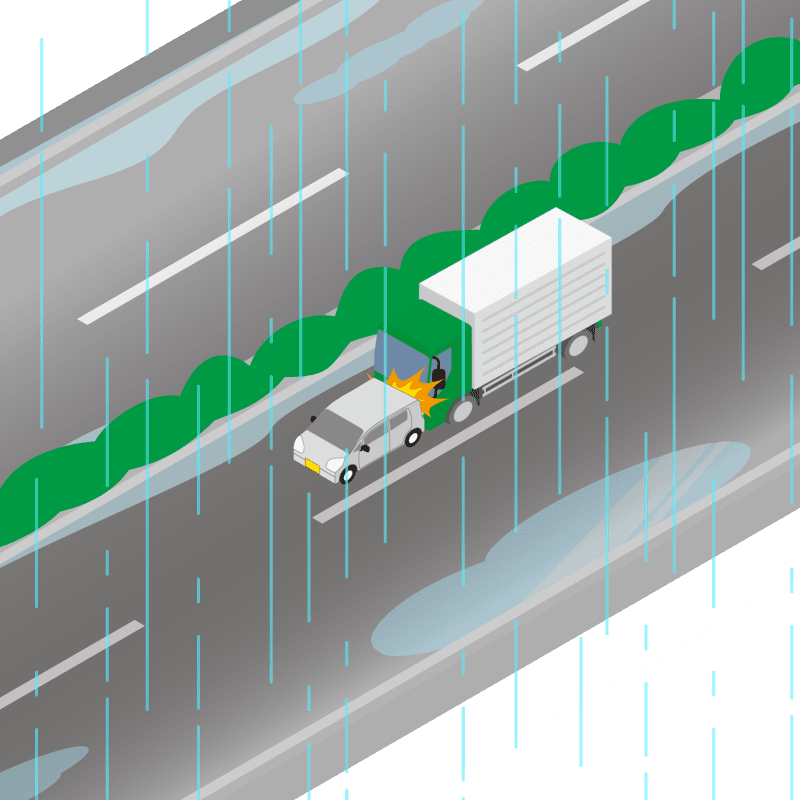 ・イラストに使用している各要素(車、背景、車、天候、信号、衝突地点など)は、代表的なイメージをイラスト化しており、色や形状等含め現実の事故の状況とは異なります。あくまで、事故のイメージとして参考までにご活用ください。