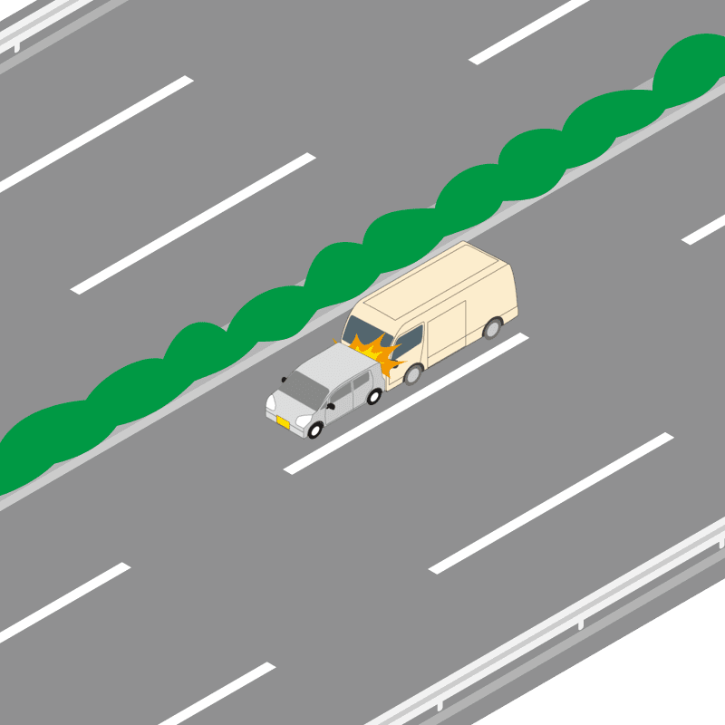・イラストに使用している各要素(車、背景、車、天候、信号、衝突地点など)は、代表的なイメージをイラスト化しており、色や形状等含め現実の事故の状況とは異なります。あくまで、事故のイメージとして参考までにご活用ください。