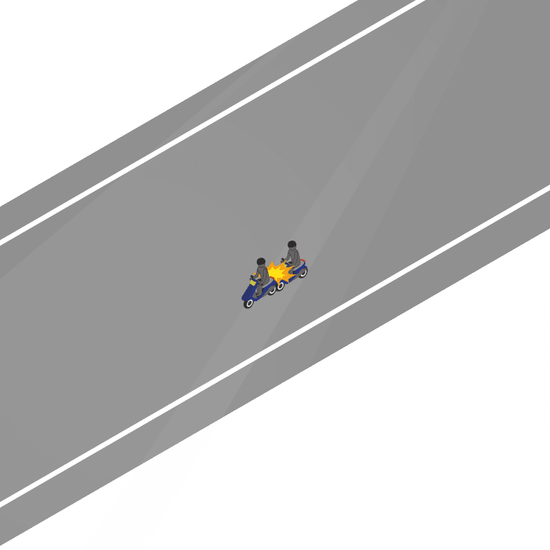 ・イラストに使用している各要素(車、背景、車、天候、信号、衝突地点など)は、代表的なイメージをイラスト化しており、色や形状等含め現実の事故の状況とは異なります。あくまで、事故のイメージとして参考までにご活用ください。