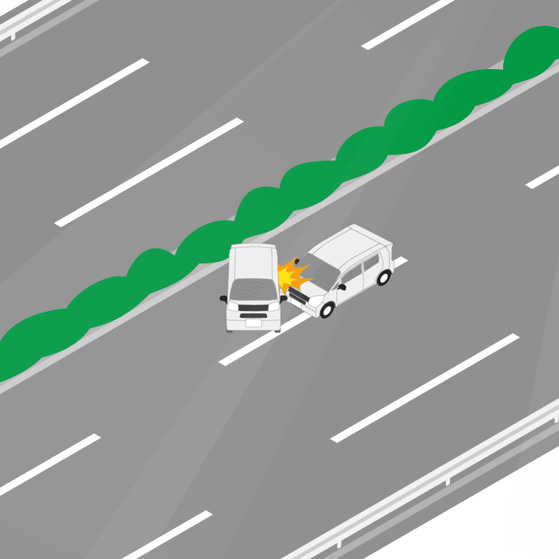 ・イラストに使用している各要素(車、背景、車、天候、信号、衝突地点など)は、代表的なイメージをイラスト化しており、色や形状等含め現実の事故の状況とは異なります。あくまで、事故のイメージとして参考までにご活用ください。