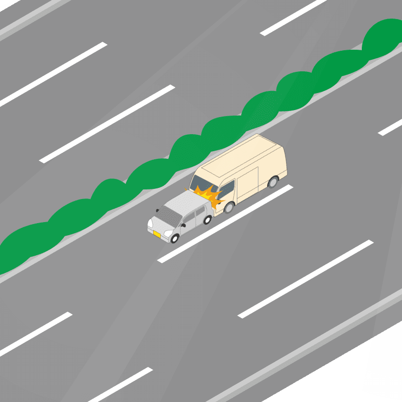 ・イラストに使用している各要素(車、背景、車、天候、信号、衝突地点など)は、代表的なイメージをイラスト化しており、色や形状等含め現実の事故の状況とは異なります。あくまで、事故のイメージとして参考までにご活用ください。