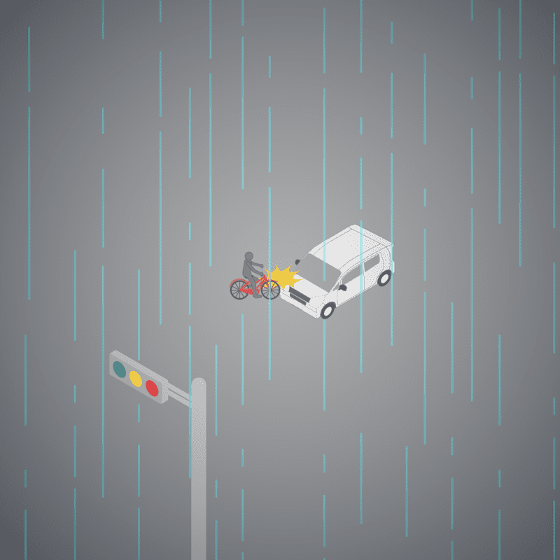 ・イラストに使用している各要素(車、背景、車、天候、信号、衝突地点など)は、代表的なイメージをイラスト化しており、色や形状等含め現実の事故の状況とは異なります。あくまで、事故のイメージとして参考までにご活用ください。