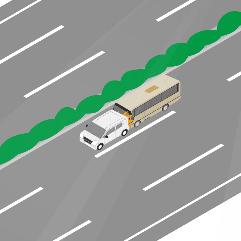 ・イラストに使用している各要素(車、背景、車、天候、信号、衝突地点など)は、代表的なイメージをイラスト化しており、色や形状等含め現実の事故の状況とは異なります。あくまで、事故のイメージとして参考までにご活用ください。