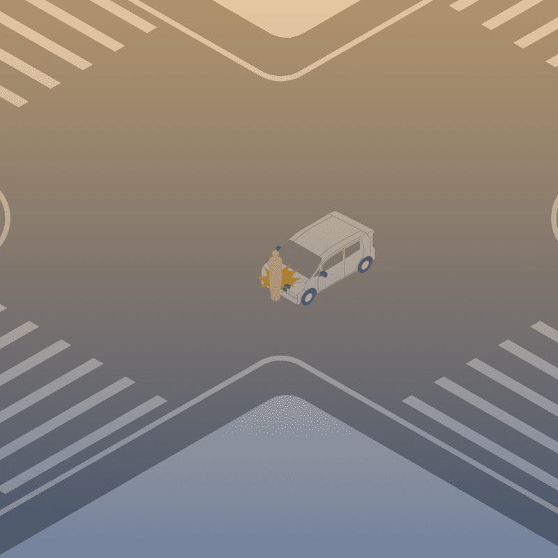 ・イラストに使用している各要素(車、背景、車、天候、信号、衝突地点など)は、代表的なイメージをイラスト化しており、色や形状等含め現実の事故の状況とは異なります。あくまで、事故のイメージとして参考までにご活用ください。