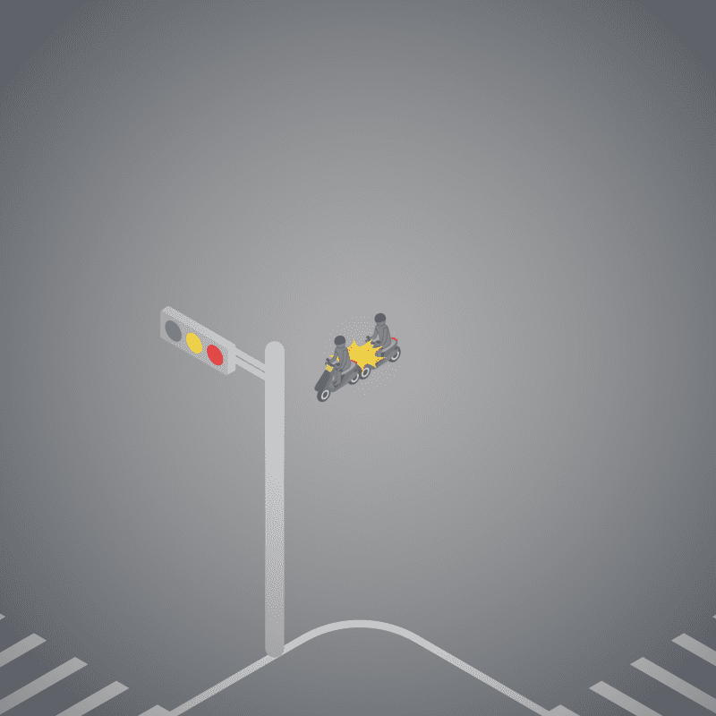 ・イラストに使用している各要素(車、背景、車、天候、信号、衝突地点など)は、代表的なイメージをイラスト化しており、色や形状等含め現実の事故の状況とは異なります。あくまで、事故のイメージとして参考までにご活用ください。