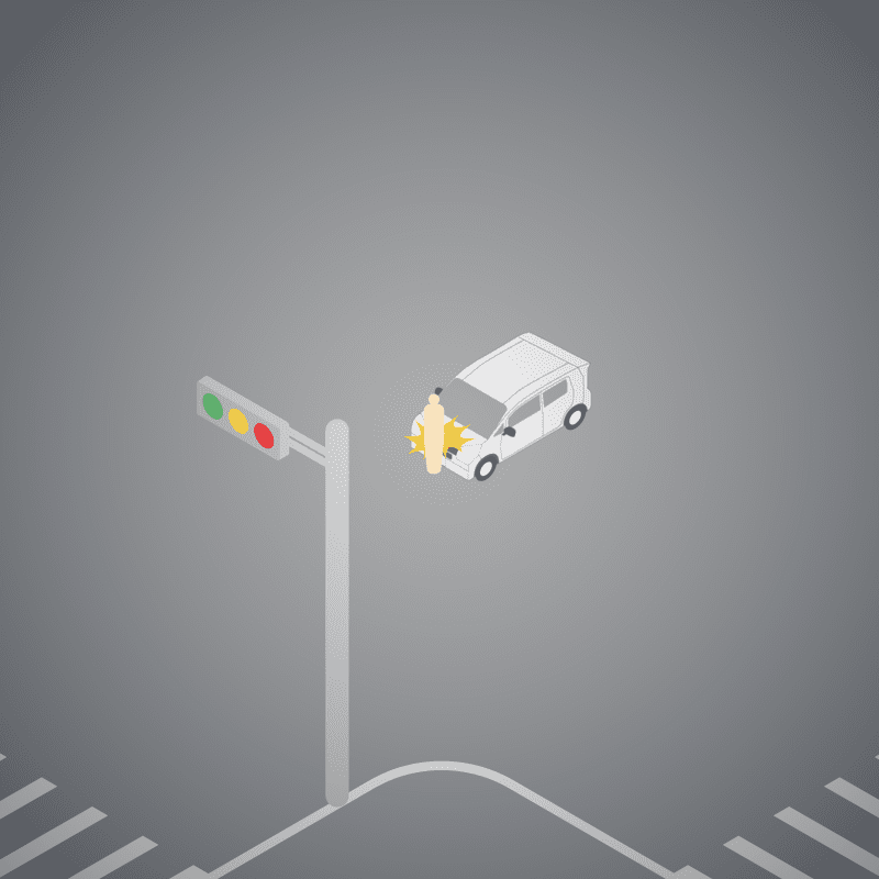 ・イラストに使用している各要素(車、背景、車、天候、信号、衝突地点など)は、代表的なイメージをイラスト化しており、色や形状等含め現実の事故の状況とは異なります。あくまで、事故のイメージとして参考までにご活用ください。