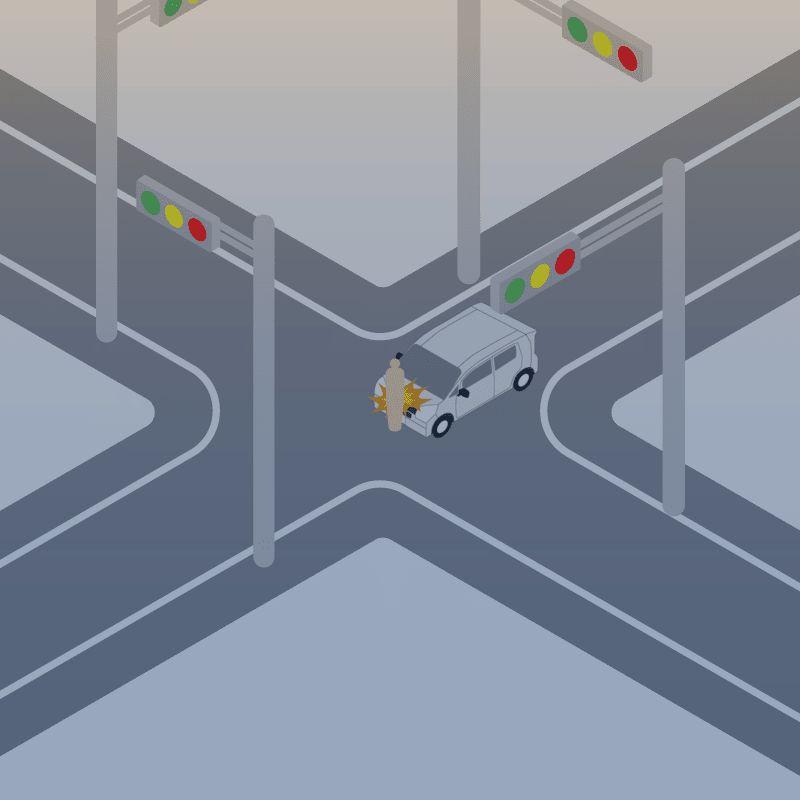 ・イラストに使用している各要素(車、背景、車、天候、信号、衝突地点など)は、代表的なイメージをイラスト化しており、色や形状等含め現実の事故の状況とは異なります。あくまで、事故のイメージとして参考までにご活用ください。
