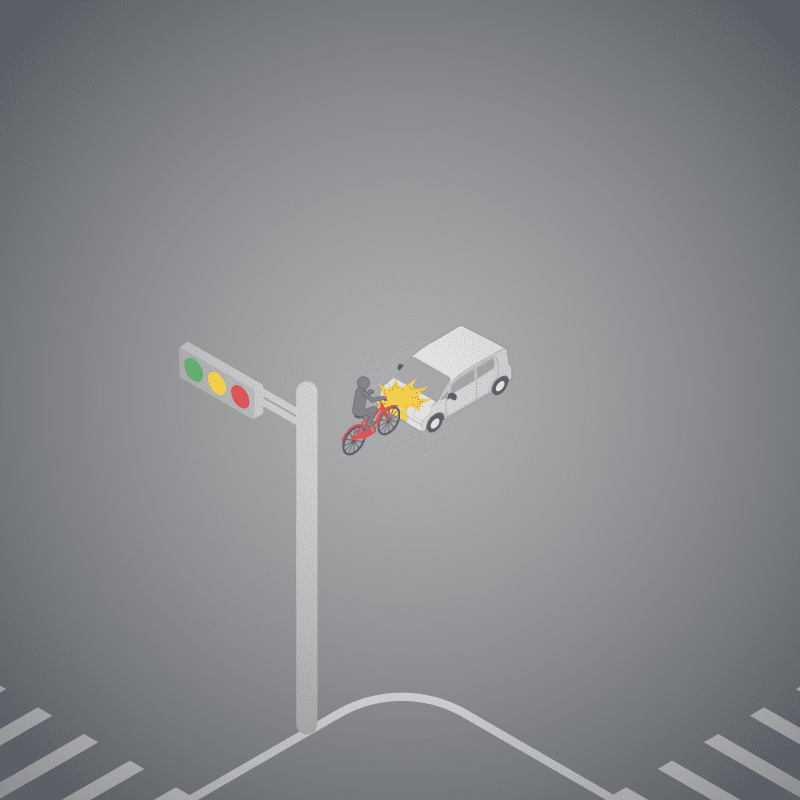 ・イラストに使用している各要素(車、背景、車、天候、信号、衝突地点など)は、代表的なイメージをイラスト化しており、色や形状等含め現実の事故の状況とは異なります。あくまで、事故のイメージとして参考までにご活用ください。