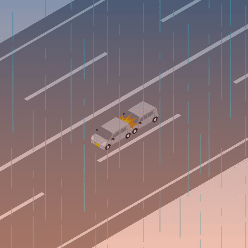 ・イラストに使用している各要素(車、背景、車、天候、信号、衝突地点など)は、代表的なイメージをイラスト化しており、色や形状等含め現実の事故の状況とは異なります。あくまで、事故のイメージとして参考までにご活用ください。