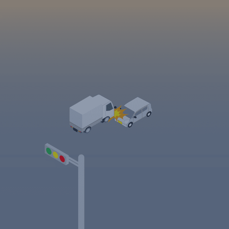 ・イラストに使用している各要素(車、背景、車、天候、信号、衝突地点など)は、代表的なイメージをイラスト化しており、色や形状等含め現実の事故の状況とは異なります。あくまで、事故のイメージとして参考までにご活用ください。