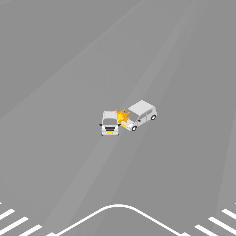 ・イラストに使用している各要素(車、背景、車、天候、信号、衝突地点など)は、代表的なイメージをイラスト化しており、色や形状等含め現実の事故の状況とは異なります。あくまで、事故のイメージとして参考までにご活用ください。