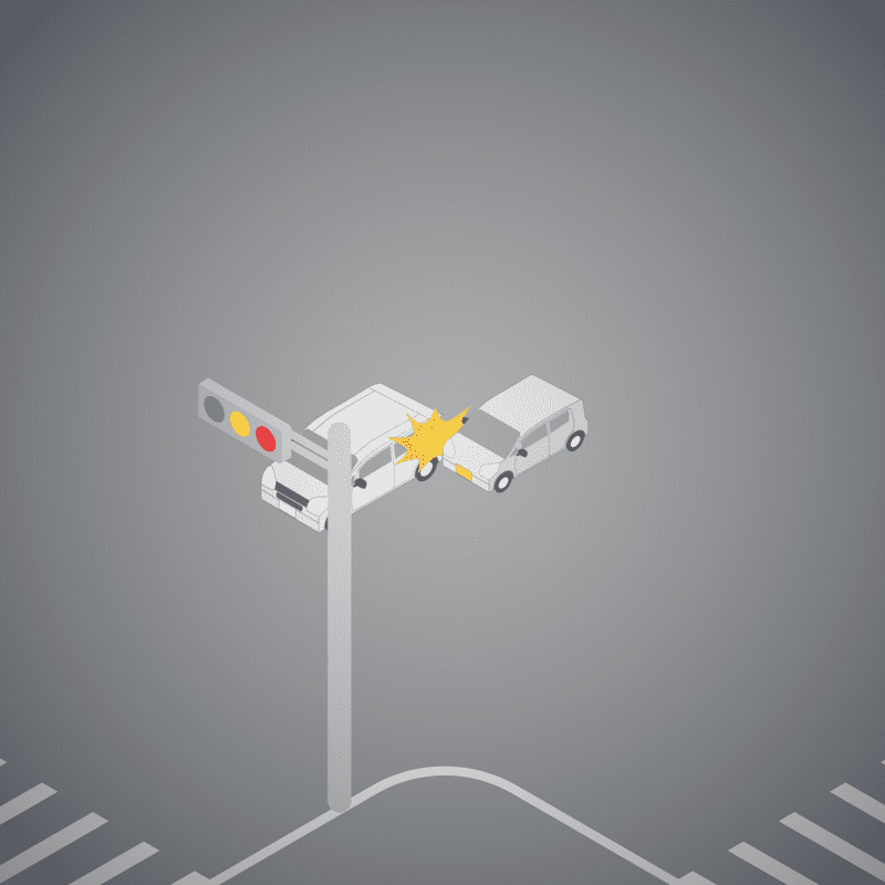 ・イラストに使用している各要素(車、背景、車、天候、信号、衝突地点など)は、代表的なイメージをイラスト化しており、色や形状等含め現実の事故の状況とは異なります。あくまで、事故のイメージとして参考までにご活用ください。