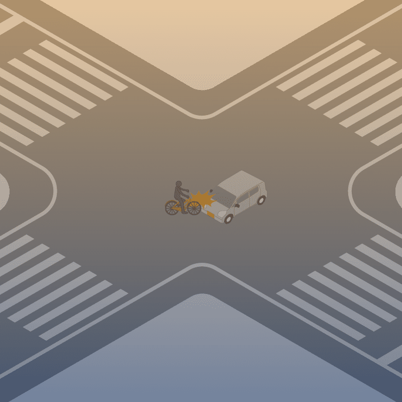 ・イラストに使用している各要素(車、背景、車、天候、信号、衝突地点など)は、代表的なイメージをイラスト化しており、色や形状等含め現実の事故の状況とは異なります。あくまで、事故のイメージとして参考までにご活用ください。
