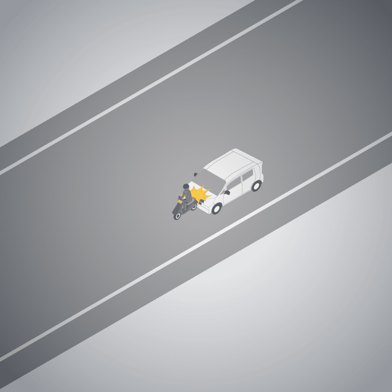 ・イラストに使用している各要素(車、背景、車、天候、信号、衝突地点など)は、代表的なイメージをイラスト化しており、色や形状等含め現実の事故の状況とは異なります。あくまで、事故のイメージとして参考までにご活用ください。