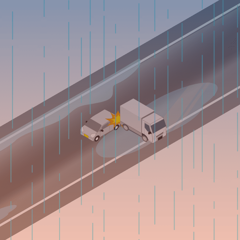 ・イラストに使用している各要素(車、背景、車、天候、信号、衝突地点など)は、代表的なイメージをイラスト化しており、色や形状等含め現実の事故の状況とは異なります。あくまで、事故のイメージとして参考までにご活用ください。
