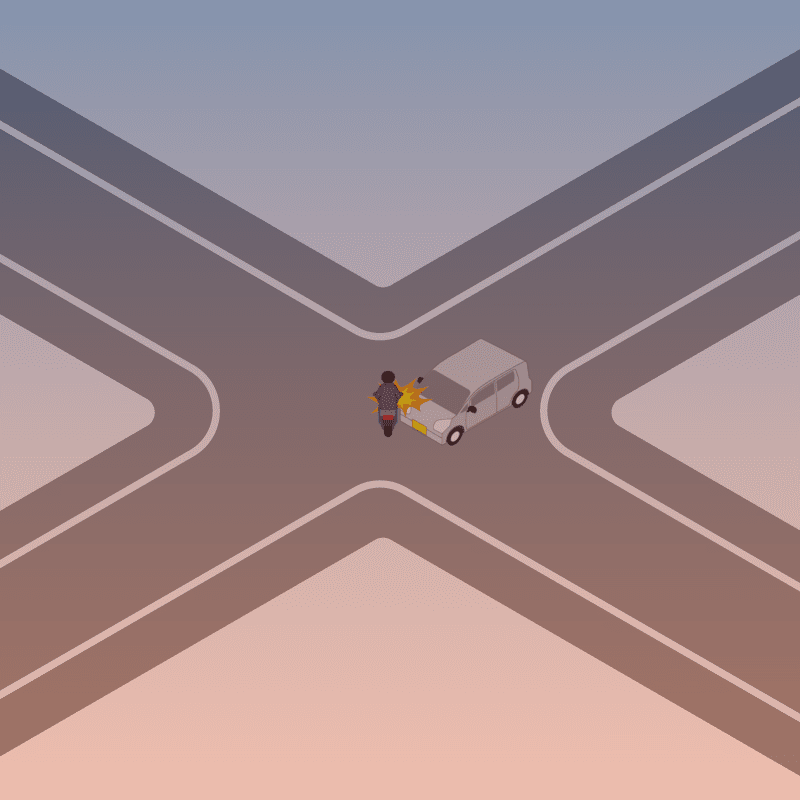 ・イラストに使用している各要素(車、背景、車、天候、信号、衝突地点など)は、代表的なイメージをイラスト化しており、色や形状等含め現実の事故の状況とは異なります。あくまで、事故のイメージとして参考までにご活用ください。