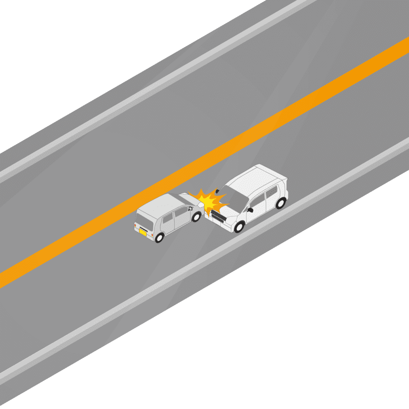 ・イラストに使用している各要素(車、背景、車、天候、信号、衝突地点など)は、代表的なイメージをイラスト化しており、色や形状等含め現実の事故の状況とは異なります。あくまで、事故のイメージとして参考までにご活用ください。