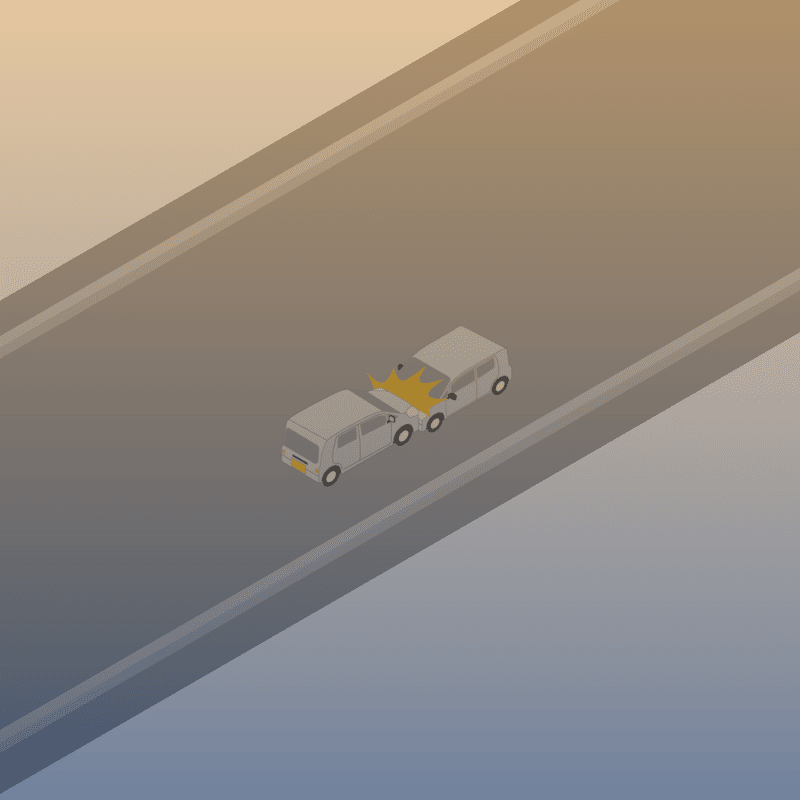 ・イラストに使用している各要素(車、背景、車、天候、信号、衝突地点など)は、代表的なイメージをイラスト化しており、色や形状等含め現実の事故の状況とは異なります。あくまで、事故のイメージとして参考までにご活用ください。