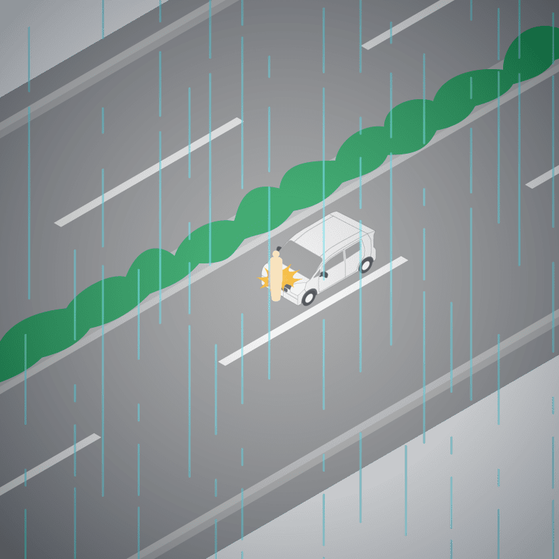 ・イラストに使用している各要素(車、背景、車、天候、信号、衝突地点など)は、代表的なイメージをイラスト化しており、色や形状等含め現実の事故の状況とは異なります。あくまで、事故のイメージとして参考までにご活用ください。