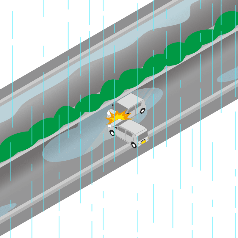 ・イラストに使用している各要素(車、背景、車、天候、信号、衝突地点など)は、代表的なイメージをイラスト化しており、色や形状等含め現実の事故の状況とは異なります。あくまで、事故のイメージとして参考までにご活用ください。