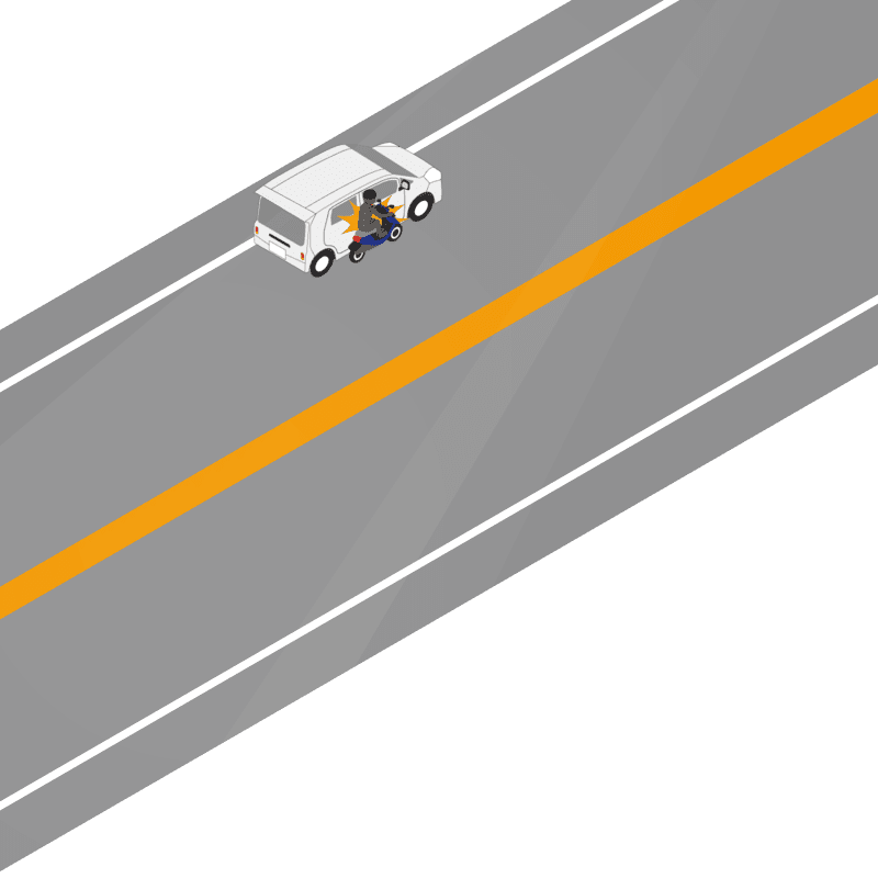 ・イラストに使用している各要素(車、背景、車、天候、信号、衝突地点など)は、代表的なイメージをイラスト化しており、色や形状等含め現実の事故の状況とは異なります。あくまで、事故のイメージとして参考までにご活用ください。