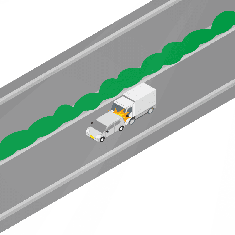 ・イラストに使用している各要素(車、背景、車、天候、信号、衝突地点など)は、代表的なイメージをイラスト化しており、色や形状等含め現実の事故の状況とは異なります。あくまで、事故のイメージとして参考までにご活用ください。