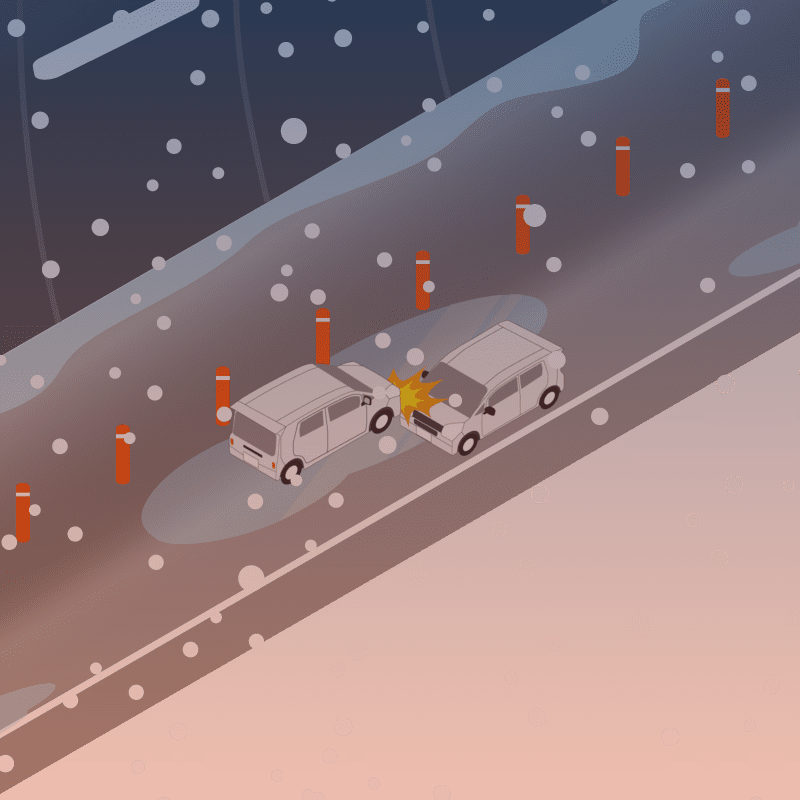 ・イラストに使用している各要素(車、背景、車、天候、信号、衝突地点など)は、代表的なイメージをイラスト化しており、色や形状等含め現実の事故の状況とは異なります。あくまで、事故のイメージとして参考までにご活用ください。