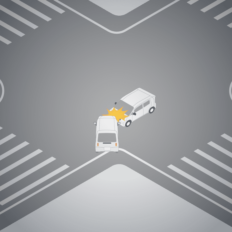 ・イラストに使用している各要素(車、背景、車、天候、信号、衝突地点など)は、代表的なイメージをイラスト化しており、色や形状等含め現実の事故の状況とは異なります。あくまで、事故のイメージとして参考までにご活用ください。