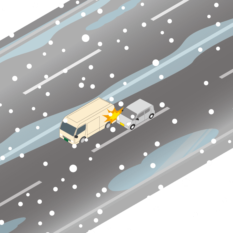 ・イラストに使用している各要素(車、背景、車、天候、信号、衝突地点など)は、代表的なイメージをイラスト化しており、色や形状等含め現実の事故の状況とは異なります。あくまで、事故のイメージとして参考までにご活用ください。