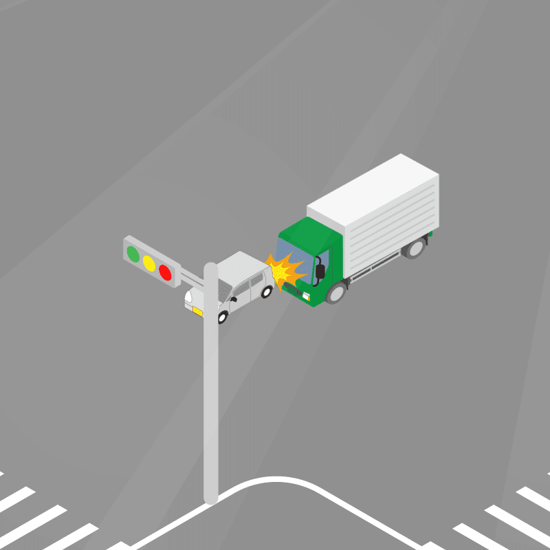 ・イラストに使用している各要素(車、背景、車、天候、信号、衝突地点など)は、代表的なイメージをイラスト化しており、色や形状等含め現実の事故の状況とは異なります。あくまで、事故のイメージとして参考までにご活用ください。