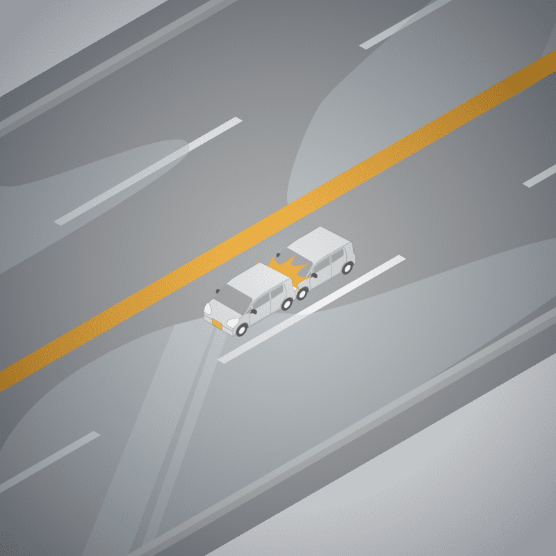 ・イラストに使用している各要素(車、背景、車、天候、信号、衝突地点など)は、代表的なイメージをイラスト化しており、色や形状等含め現実の事故の状況とは異なります。あくまで、事故のイメージとして参考までにご活用ください。