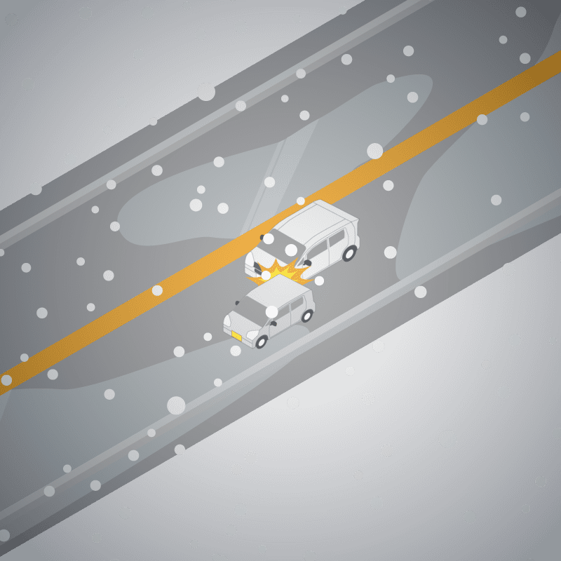 ・イラストに使用している各要素(車、背景、車、天候、信号、衝突地点など)は、代表的なイメージをイラスト化しており、色や形状等含め現実の事故の状況とは異なります。あくまで、事故のイメージとして参考までにご活用ください。