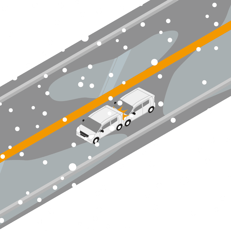 ・イラストに使用している各要素(車、背景、車、天候、信号、衝突地点など)は、代表的なイメージをイラスト化しており、色や形状等含め現実の事故の状況とは異なります。あくまで、事故のイメージとして参考までにご活用ください。