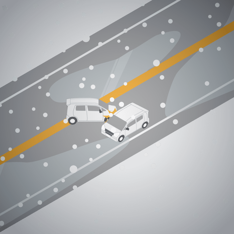 ・イラストに使用している各要素(車、背景、車、天候、信号、衝突地点など)は、代表的なイメージをイラスト化しており、色や形状等含め現実の事故の状況とは異なります。あくまで、事故のイメージとして参考までにご活用ください。