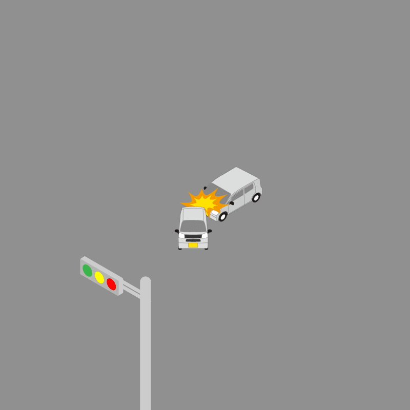 ・イラストに使用している各要素(車、背景、車、天候、信号、衝突地点など)は、代表的なイメージをイラスト化しており、色や形状等含め現実の事故の状況とは異なります。あくまで、事故のイメージとして参考までにご活用ください。
