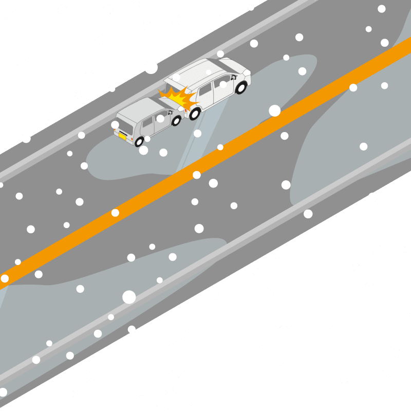 ・イラストに使用している各要素(車、背景、車、天候、信号、衝突地点など)は、代表的なイメージをイラスト化しており、色や形状等含め現実の事故の状況とは異なります。あくまで、事故のイメージとして参考までにご活用ください。