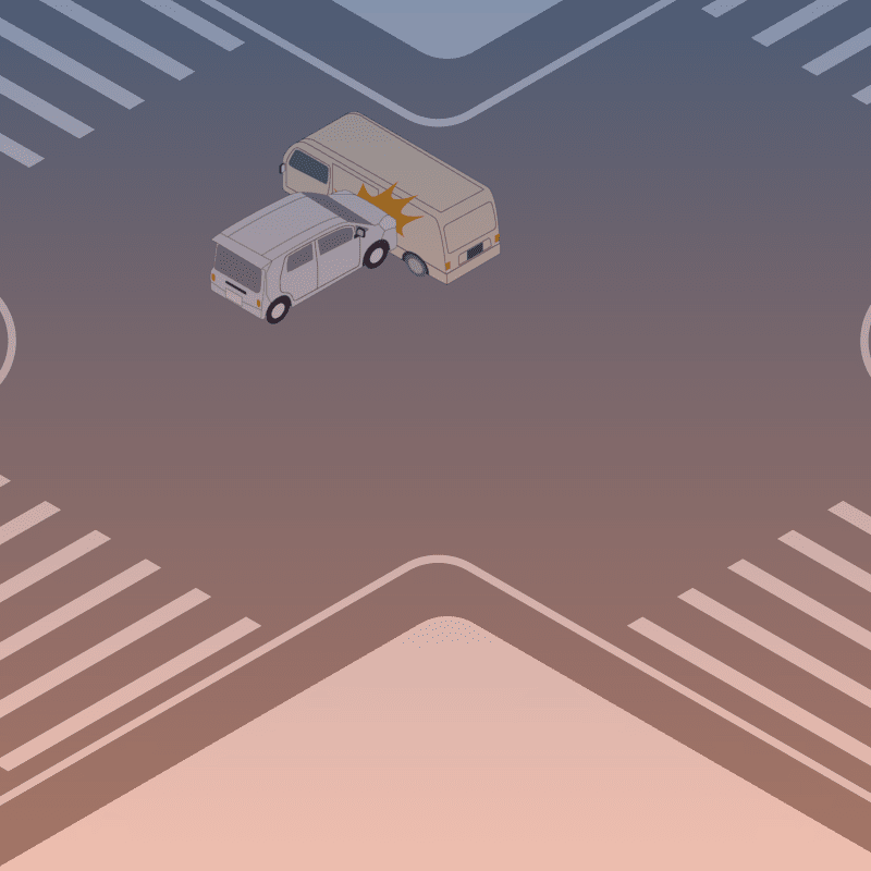 ・イラストに使用している各要素(車、背景、車、天候、信号、衝突地点など)は、代表的なイメージをイラスト化しており、色や形状等含め現実の事故の状況とは異なります。あくまで、事故のイメージとして参考までにご活用ください。