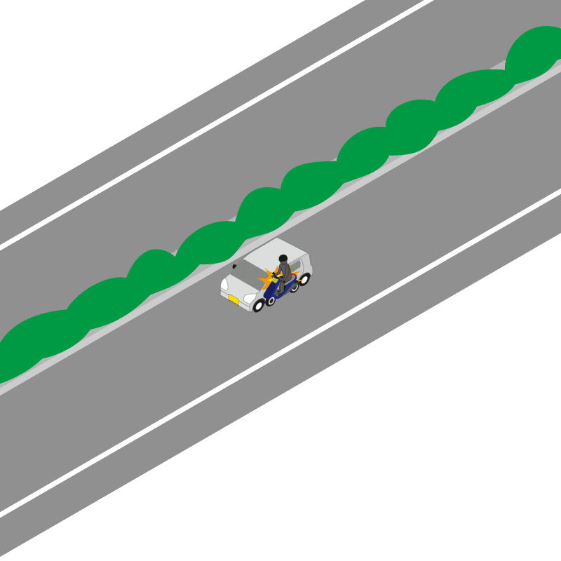 ・イラストに使用している各要素(車、背景、車、天候、信号、衝突地点など)は、代表的なイメージをイラスト化しており、色や形状等含め現実の事故の状況とは異なります。あくまで、事故のイメージとして参考までにご活用ください。