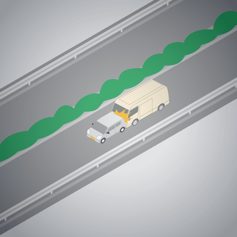 ・イラストに使用している各要素(車、背景、車、天候、信号、衝突地点など)は、代表的なイメージをイラスト化しており、色や形状等含め現実の事故の状況とは異なります。あくまで、事故のイメージとして参考までにご活用ください。