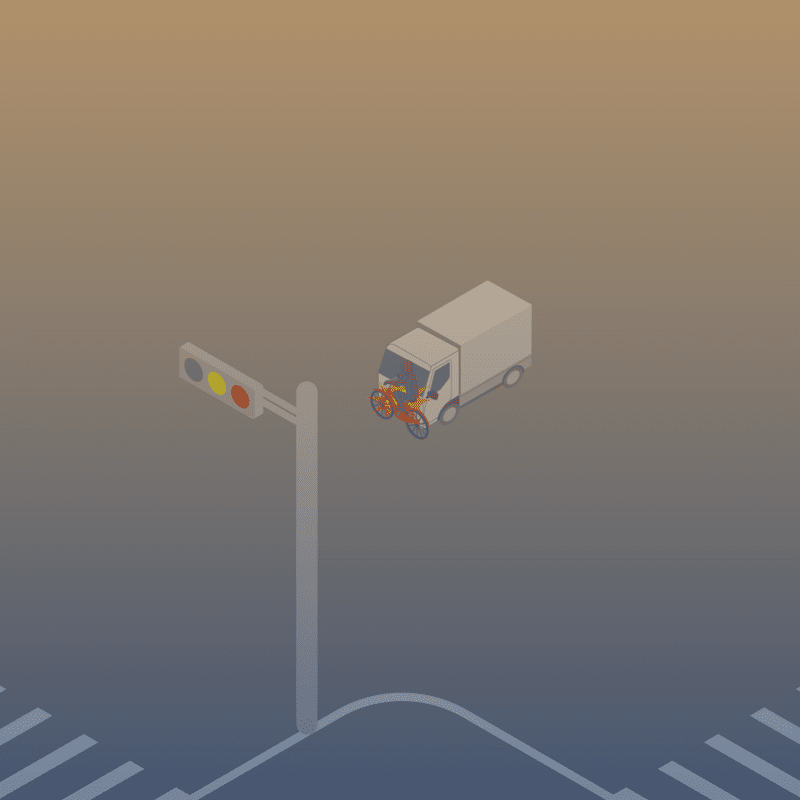 ・イラストに使用している各要素(車、背景、車、天候、信号、衝突地点など)は、代表的なイメージをイラスト化しており、色や形状等含め現実の事故の状況とは異なります。あくまで、事故のイメージとして参考までにご活用ください。