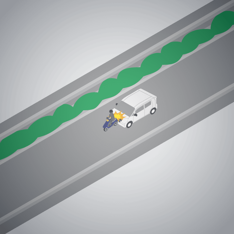 ・イラストに使用している各要素(車、背景、車、天候、信号、衝突地点など)は、代表的なイメージをイラスト化しており、色や形状等含め現実の事故の状況とは異なります。あくまで、事故のイメージとして参考までにご活用ください。
