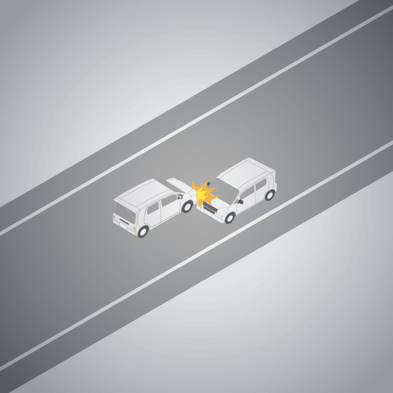 ・イラストに使用している各要素(車、背景、車、天候、信号、衝突地点など)は、代表的なイメージをイラスト化しており、色や形状等含め現実の事故の状況とは異なります。あくまで、事故のイメージとして参考までにご活用ください。