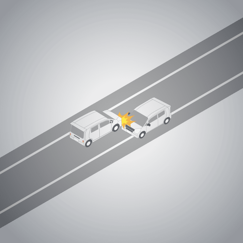 ・イラストに使用している各要素(車、背景、車、天候、信号、衝突地点など)は、代表的なイメージをイラスト化しており、色や形状等含め現実の事故の状況とは異なります。あくまで、事故のイメージとして参考までにご活用ください。