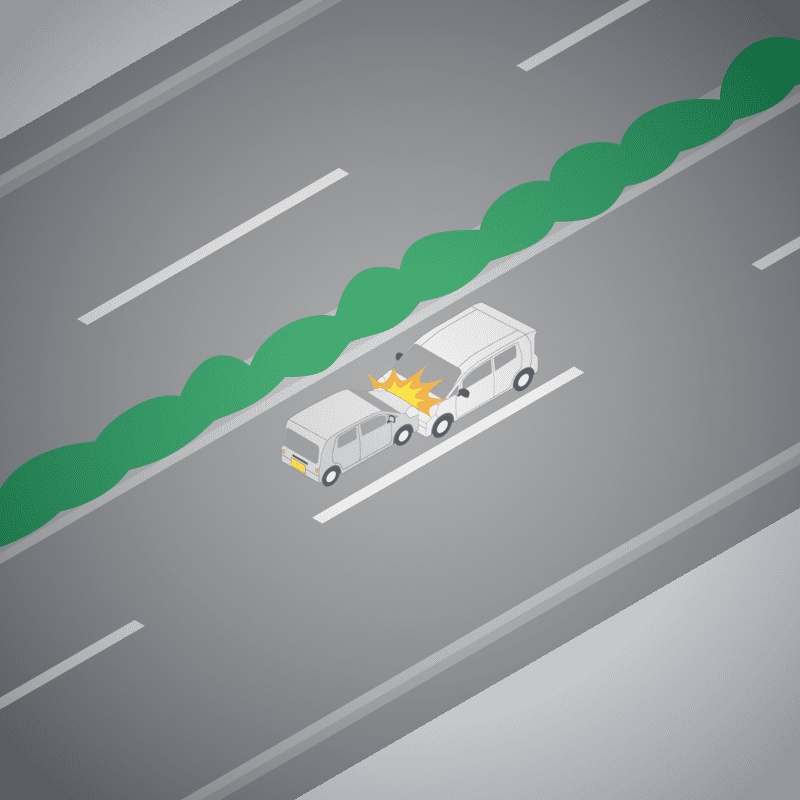 ・イラストに使用している各要素(車、背景、車、天候、信号、衝突地点など)は、代表的なイメージをイラスト化しており、色や形状等含め現実の事故の状況とは異なります。あくまで、事故のイメージとして参考までにご活用ください。