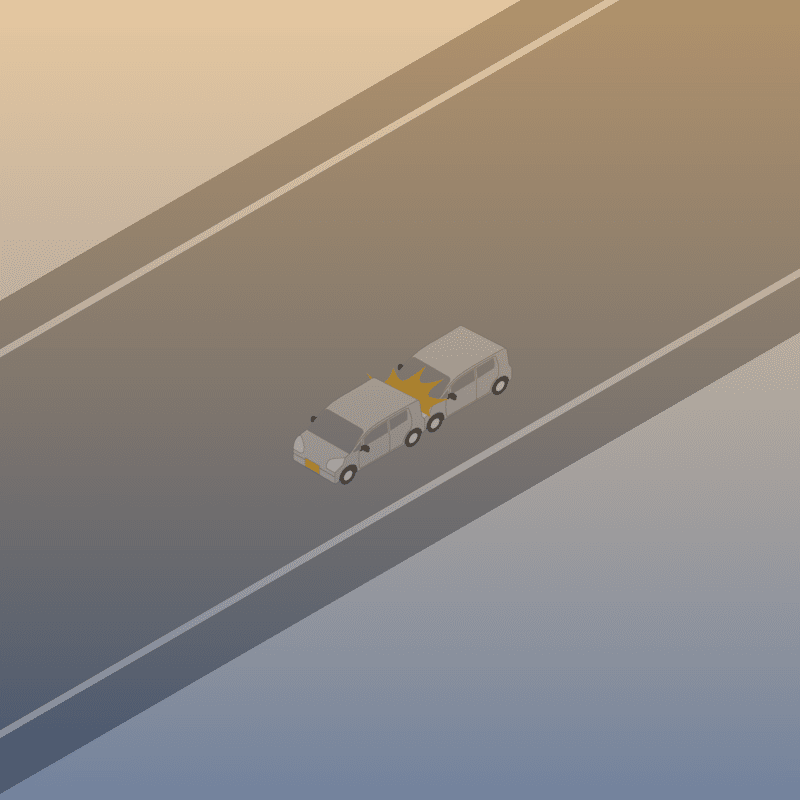 ・イラストに使用している各要素(車、背景、車、天候、信号、衝突地点など)は、代表的なイメージをイラスト化しており、色や形状等含め現実の事故の状況とは異なります。あくまで、事故のイメージとして参考までにご活用ください。